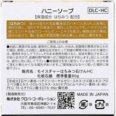 ◆特 長◆ 保湿成分はちみつ配合。 天然の美肌成分が健康的な肌作りをサポートします。 昔から知られる滋養食品のハチミツ。石けんと非常に相性が良く、改めてその保湿力に着目した石けんです。 植物由来の美肌成分も加えて、潤いを逃さず透明感のある美しいお肌に導きます。 ◆メーカー◆ 株式会社クロバーコーポレーション ※製造国または原産国:日本 ◆ご使用方法◆ 適量を水かぬるま湯で泡立てた後、皮膚を洗浄し、そのあとよくすすいでください。 ◆成 分◆ 石ケン素地、ハチミツ、ローヤルゼリーエキス、クズ根エキス、アロエベラ葉エキス、クロレラエキス、コカミドプロピルベタイン、香料、水、BG、PEG-75、エチドロン酸、EDTA-4Na、酸化鉄 ◆使用上の注意◆ ・お肌に異常がある時、使用中に赤味、はれ、かゆみ、刺激等の異常があらわれた場合、使用したお肌に、直射日光があたって同様の異常があらわれた場合には、使用を中止して下さい。 ・そのまま使用を続けると、症状を悪化させることがありますので、皮膚科専門医等へのご相談をおすすめします。 ・目に入った時は、直ちに洗い流して下さい。 ・保湿成分を多く配合しているので、水分を多く含むと軟らかくなる場合があります。ご使用後はなるべく乾いた場所に保管下さい。 |